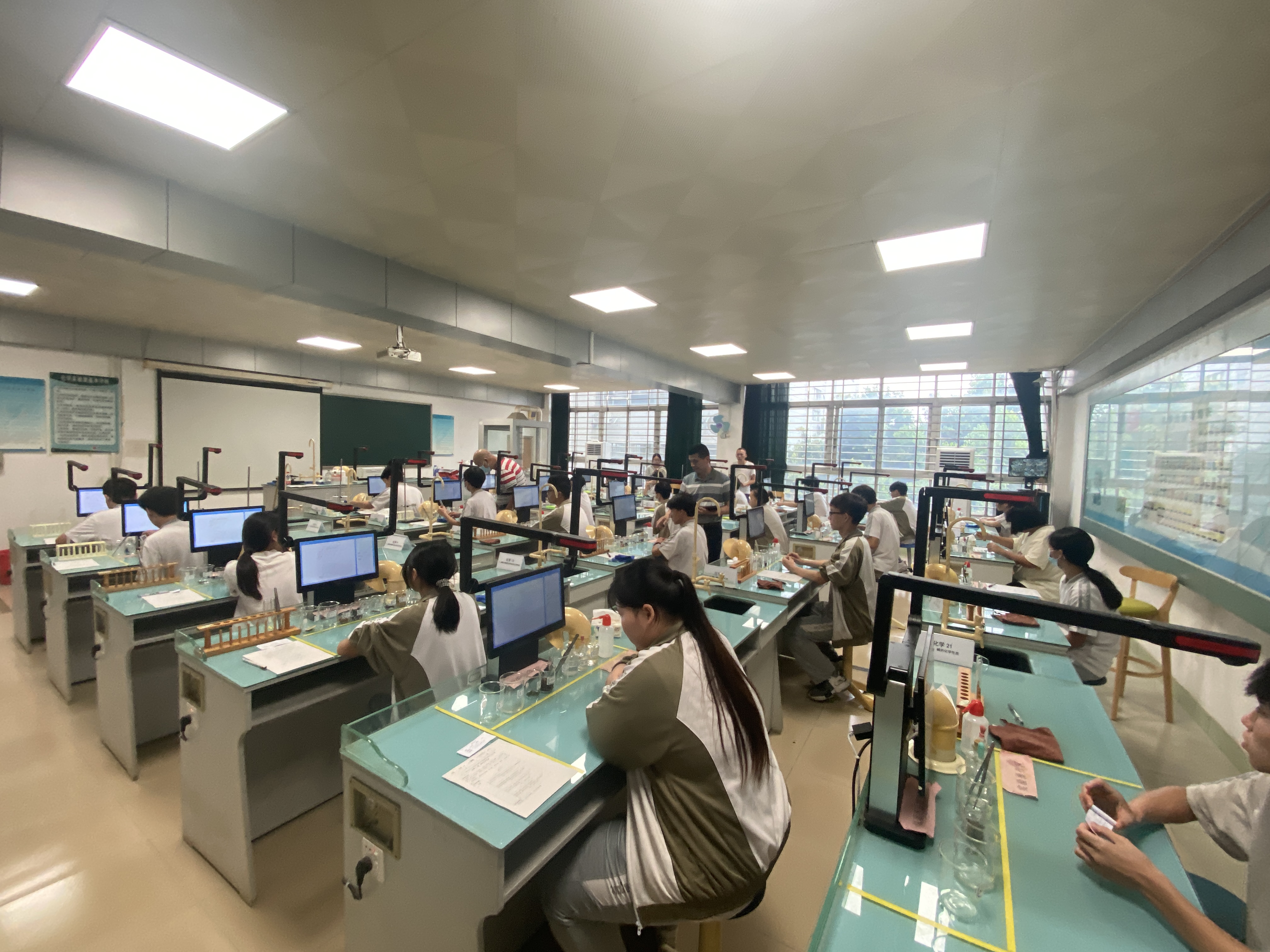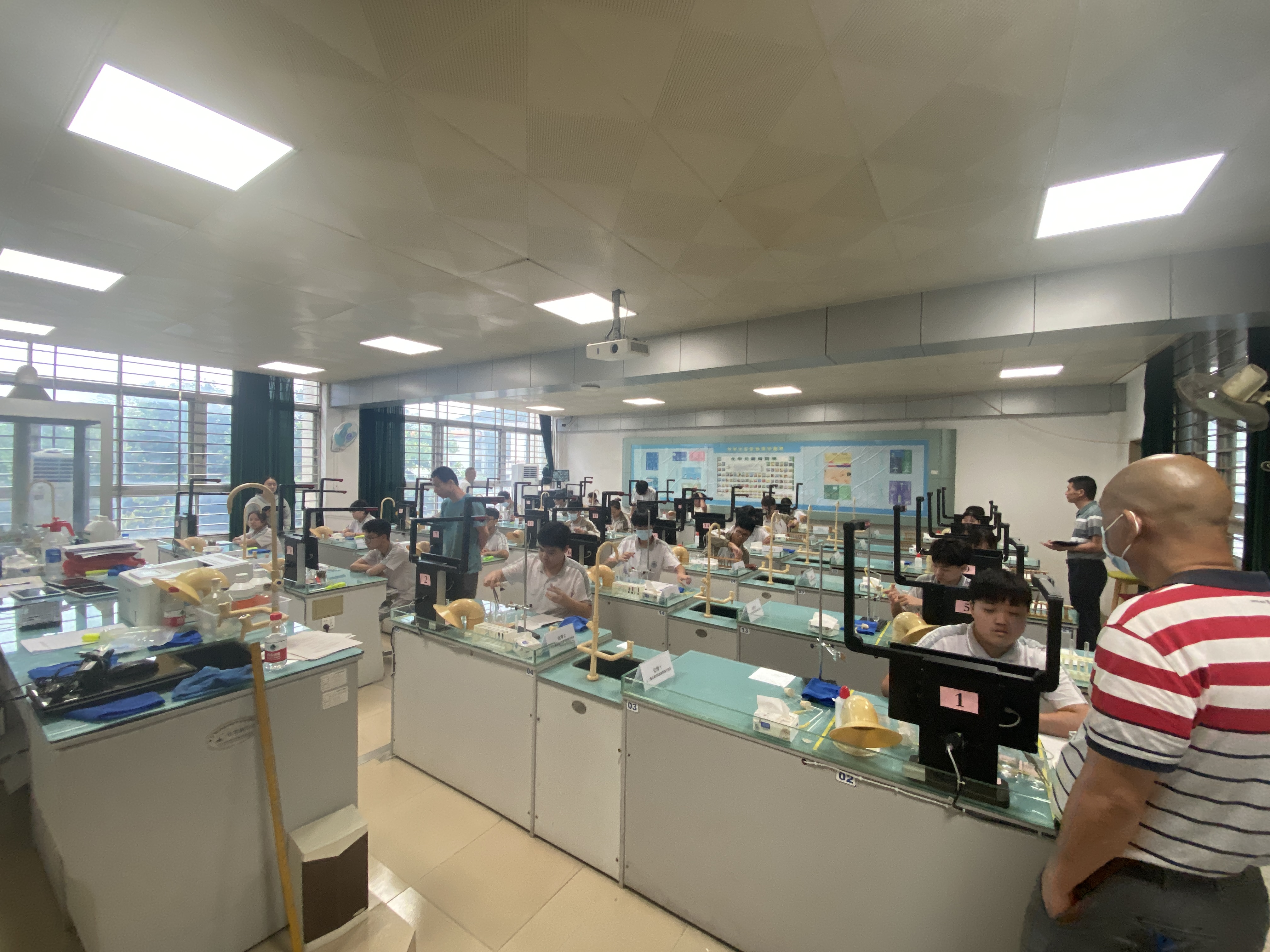 實驗操作模擬考試正式開始。只見考生們神情專注、淡定從容、操作規(guī)范;監(jiān)考教師一絲不茍、認真負責、嚴格把關;工作人員各司其職、各負其責。整個模擬考流程銜接自然,到下午4:30左右全體考生分24場順利完成考試。